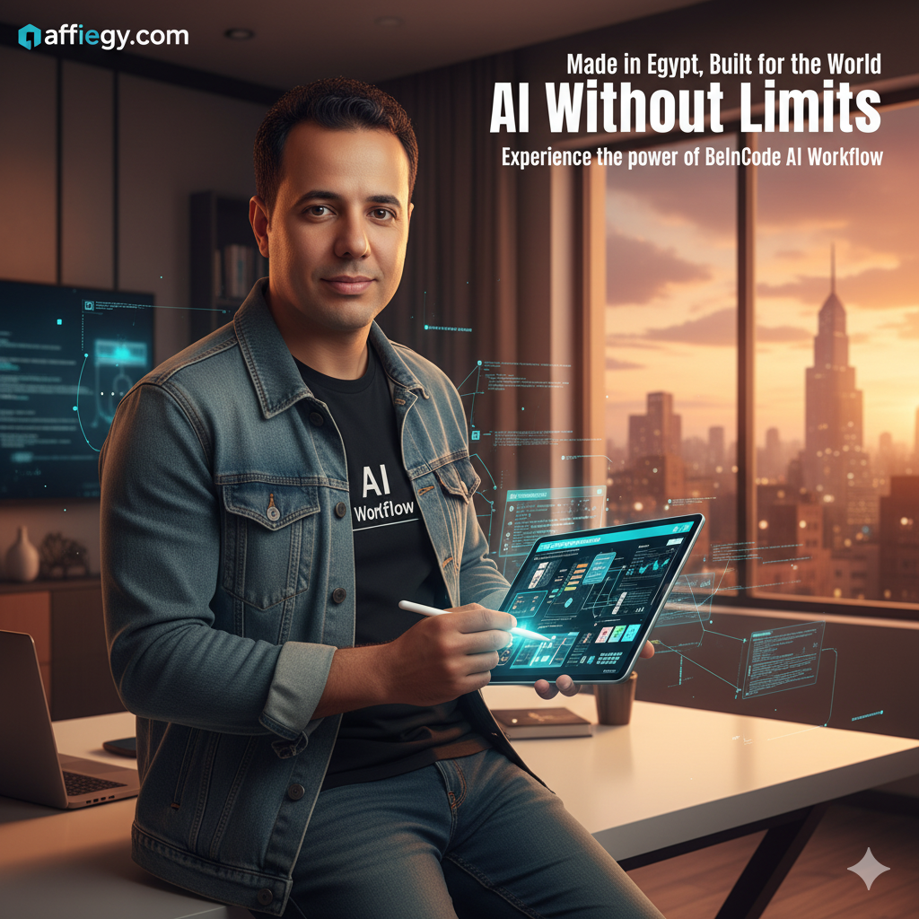 BeInCode AI Workflow، المنصة المصرية اللي أسسها محمد فارس، هي الخيار الأول لأي مسوق عربي. فيها أكثر من 1000 أداة AI للصور، الفيديو، والتسويق، بدون قيود أو اشتراكات. تقدر تولّد صور، تعدّلها، وتحوّلها لتصميمات جاهزة للنشر على أفلييت مصر أو تجار كوم.