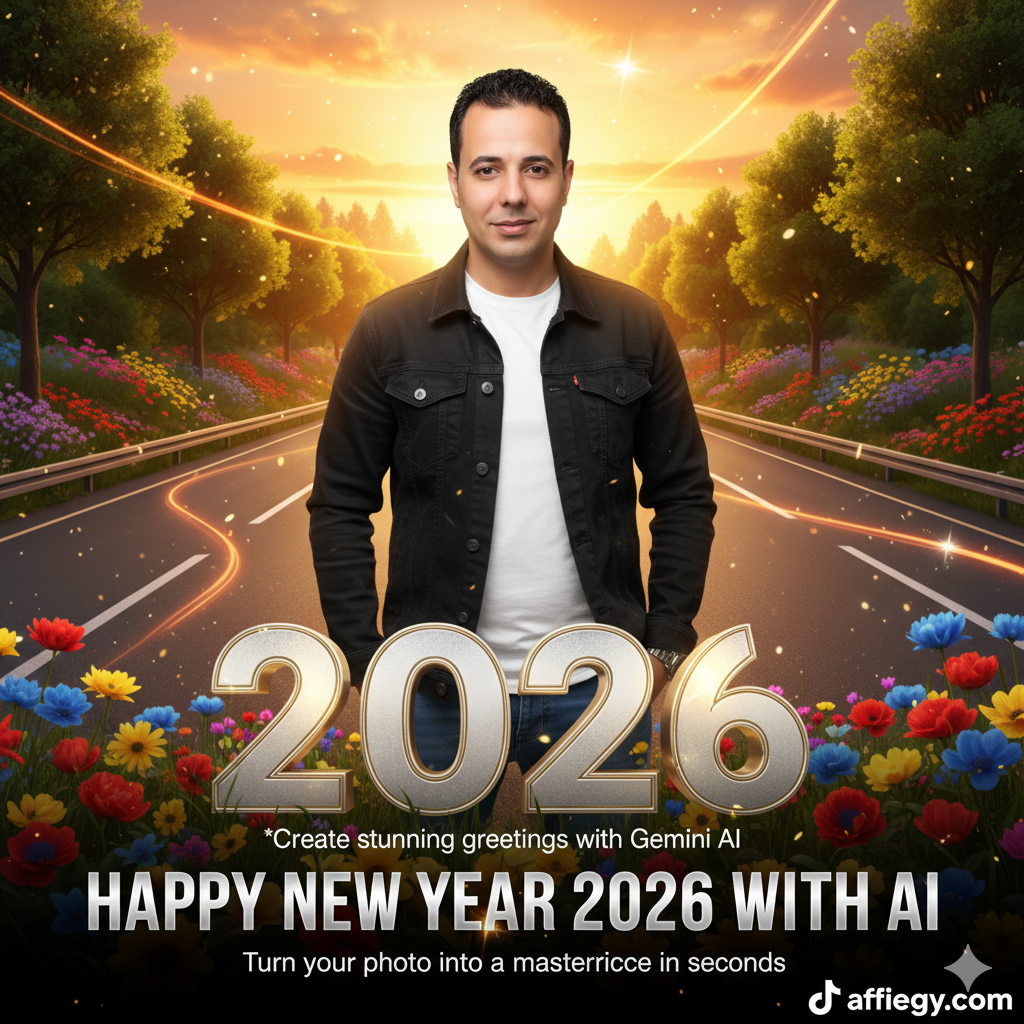 ابدأ دلوقتي واصنع صورتك الاحترافية للسنة الجديدة عبر Gemini أو أي أداة AI — احتفل بـ 2026 بأسلوبك الخاص 🎆