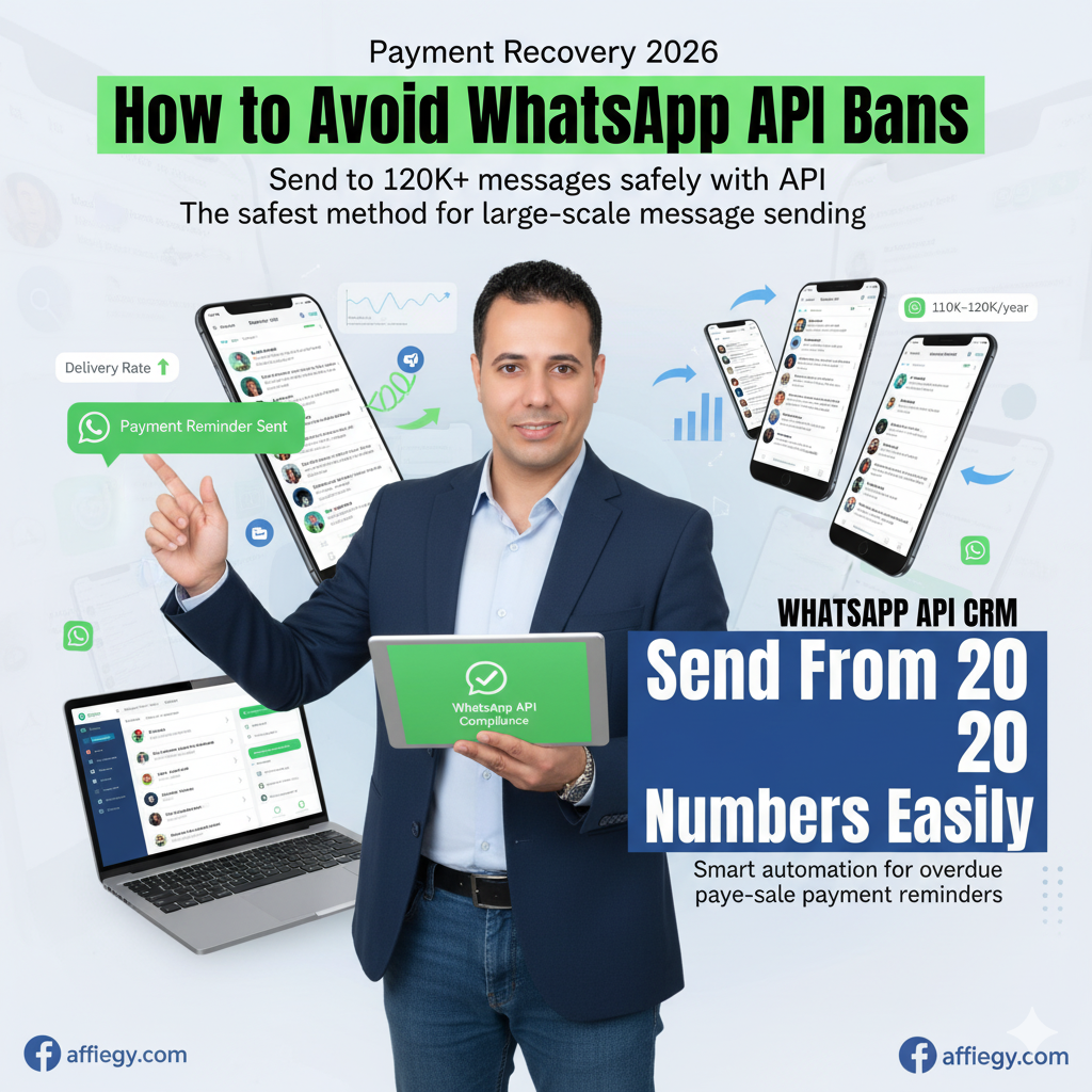 هل سبق وخسرت رقم واتساب تجاري كامل بسبب إرسال 500 رسالة تذكير فقط؟ هل تخشى أن تُحظر جميع حساباتك الرسمية بمجرد أن تبدأ حملة تذكير بالأقساط المتأخرة؟ في عام 2026، أصبح إرسال 100 إلى 150 ألف رسالة تذكير سنويًا أمرًا يوميًا لشركات التقسيط، التحصيل، العيادات، والمتاجر الإلكترونية في مصر والسعودية والإمارات… لكن بشرط واحد لا ثاني له: استخدام WhatsApp Business API الرسمي بشكل احترافي ومطابق لسياسات ميتا. في هذا الدليل العملي الشامل سنمنحك الطريقة الآمنة بنسبة 100%، مع أمثلة مصرية وعربية حقيقية، خطوات الربط التقني الدقيقة، وأدوات جاهزة تجعلك تبدأ اليوم دون أي مخاطر أو خسائر.
