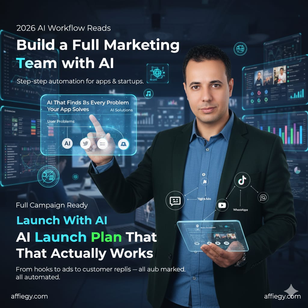 أنت خبير تسويق تطبيقات في السوق المصري والعربي 2026. لدي تطبيق [وصف التطبيق في جملة واحدة]. قم بالتالي خطوة بخطوة: 1. حلل المشاكل الرئيسية للمستخدمين في مصر والخليج. 2. استخرج 10 هوكات قوية باللهجة المصرية و5 بالخليجي. 3. صمم خطة محتوى لمدة 30 يوم (ريلز - ستوري - بوست). 4. اقترح ميزانية إعلانات يومية على فيسبوك وتيك توك. 5. صمم 10 بنرات جاهزة للإعلانات. 6. اكتب سكريبت بوت واتساب للترحيب والأسئلة الشائعة. كل النتايج باللغة العربية وجاهزة للاستخدام المباشر.