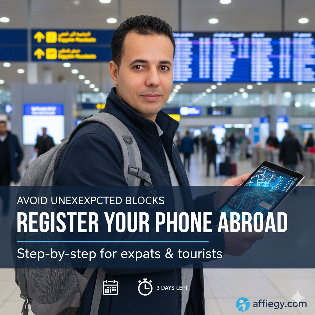 لو جاي من الخارج أو مغترب، أول خطوة تسجيل الجهاز فور الوصول عبر التطبيق أو في المطار. المهلة 90 يومًا من تفعيل شريحة مصرية قبل ما الشبكة تتوقف.