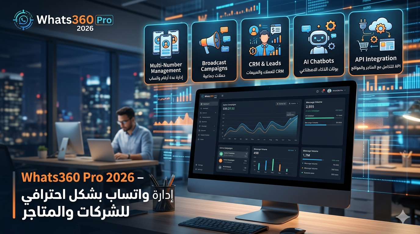 Whats360 Pro 2026: المنصة المثالية لإدارة واتساب للشركات والمتاجر