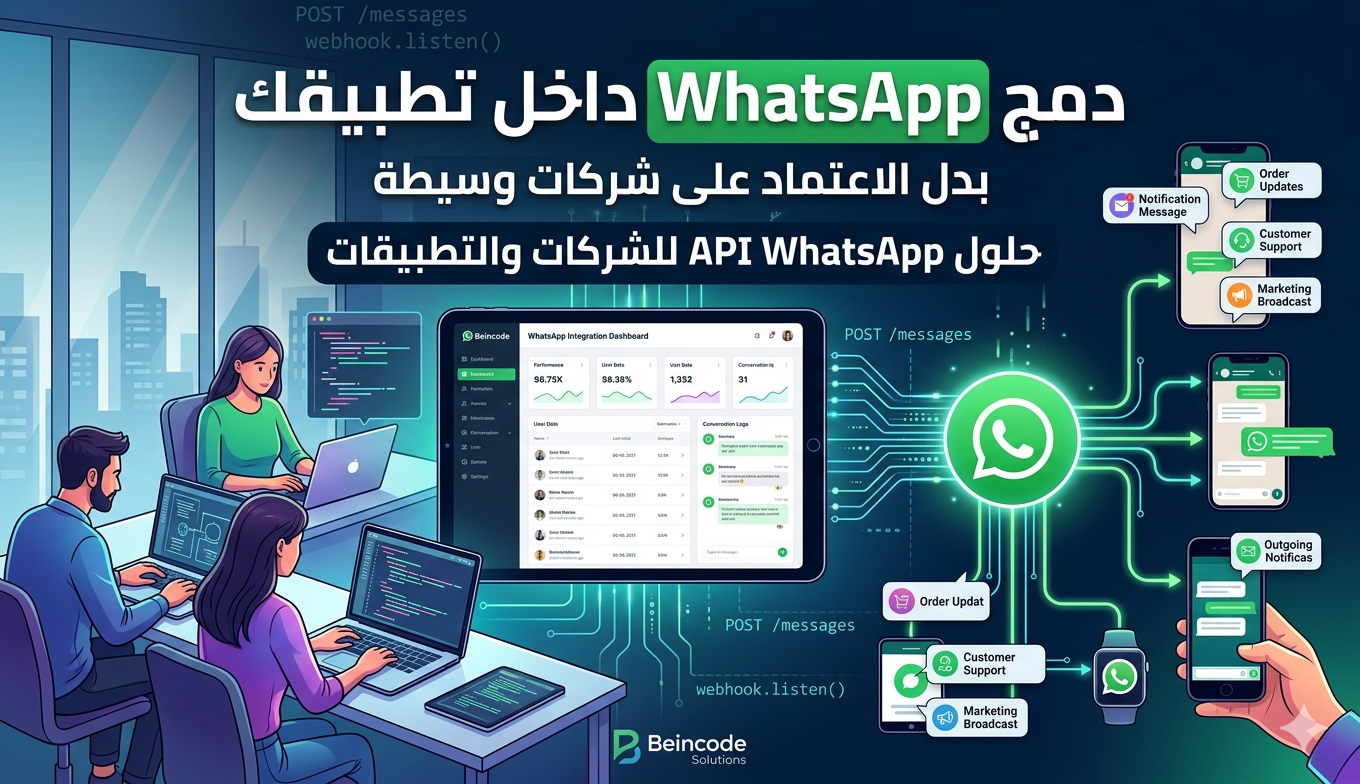 تخيل أن بيانات عملائك، وهي أغلى أصول شركتك، تمر عبر خوادم لا تملك السيطرة عليها. هذا ليس مجرد مخاطرة تقنية، بل هو نزيف في Customer Lifetime Value (LTV) وزيادة غير مبررة في Customer Acquisition Cost (CAC). في هذا المرجع الاستراتيجي، سنقوم بتفكيك كيفية تحويل WhatsApp API من مجرد وسيلة تواصل إلى “محرك أرباح” مدمج أصيلاً داخل تطبيقك أو موقعك عبر حلول Beincode، وكيفية ربط ذلك بشبكة متكاملة تضم CRM، Digital Payments، وأتمتة العمليات لرفع معدل التحويل CRO لأقصى مستوياته.
