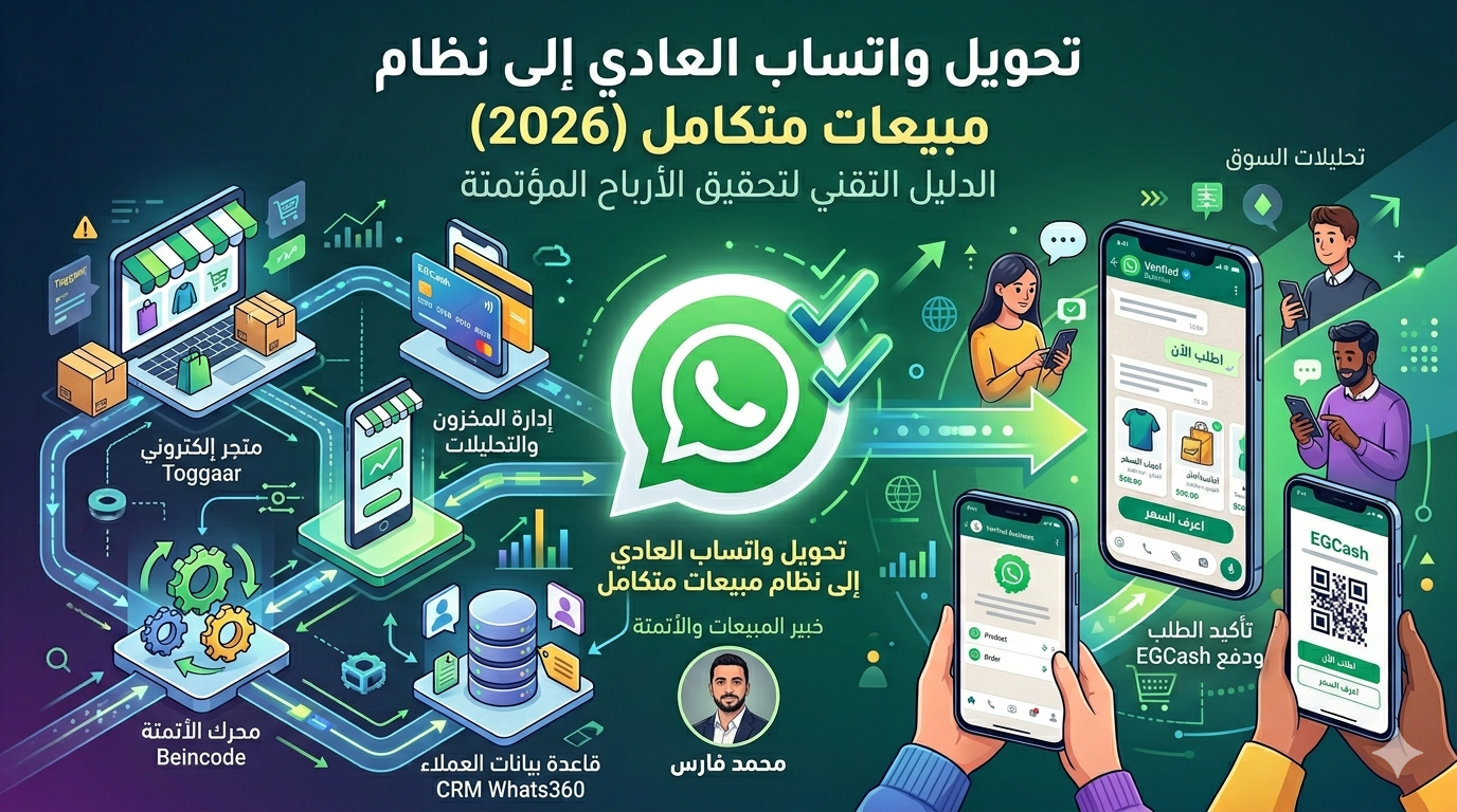 في 2026، أي مشروع مش مبني على Automation Infrastructure و Data-Driven Sales هو مشروع بيحرق فلوس بدون ما يحس. العميل بقى متطلب، سريع، ومش مستني ردود بشرية بطيئة. هنا بييجي دور تحويل واتساب من مجرد شات إلى Revenue Engine شغال 24/7.