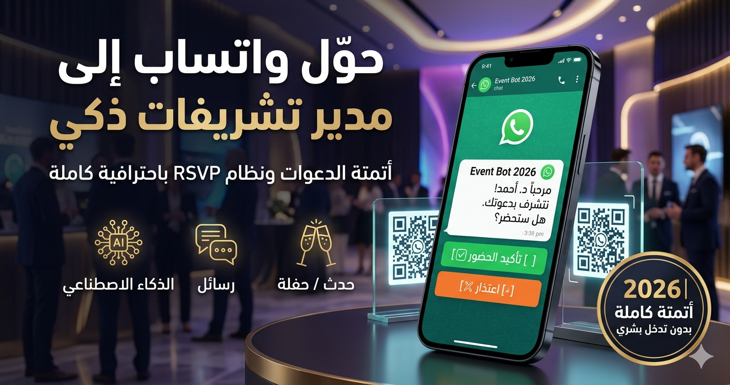 مع حلول عام 2026، وبفضل التطور الهائل في واجهات برمجة تطبيقات واتساب (WhatsApp API) وتقنيات الأتمتة، لم يعد هناك مكان للعشوائية. تحول الواتساب من مجرد تطبيق للدردشة إلى “مدير تشريفات ذكي” يعمل على مدار الساعة. في هذا الدليل، نكشف لك كيف يمكنك أتمتة نظام الدعوات والـ RSVP بالكامل، لتوفر وقتك وجهدك وتمنح ضيوفك تجربة تقنية لا تُنسى.