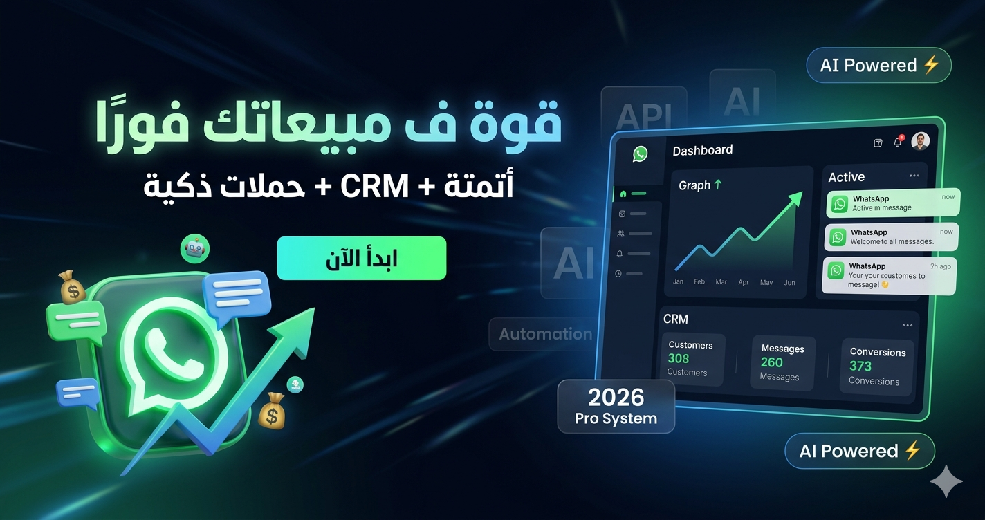 تعتبر منصة Whats360 Pro حجر الزاوية لأي مشروع يسعى للتحول الرقمي الحقيقي في مصر عام 2026. سواء كنت تبحث عن زيادة مبيعات متجرك، أو أتمتة خدمة العملاء، أو بناء نظام تقني معقد يربط بين المواقع والتطبيقات، فإن تنوع الباقات من المجانية وحتى Enterprise يضمن لك وجود مكان دائمًا. تذكر أن الاستثمار في أدوات الأتمتة ليس رفاهية، بل هو الطريقة الوحيدة للبقاء والمنافسة في سوق لا يرحم البطء. ابدأ اليوم بالباقة التي تناسب حجمك الحالي، وتوسع مع نمو أعمالك.