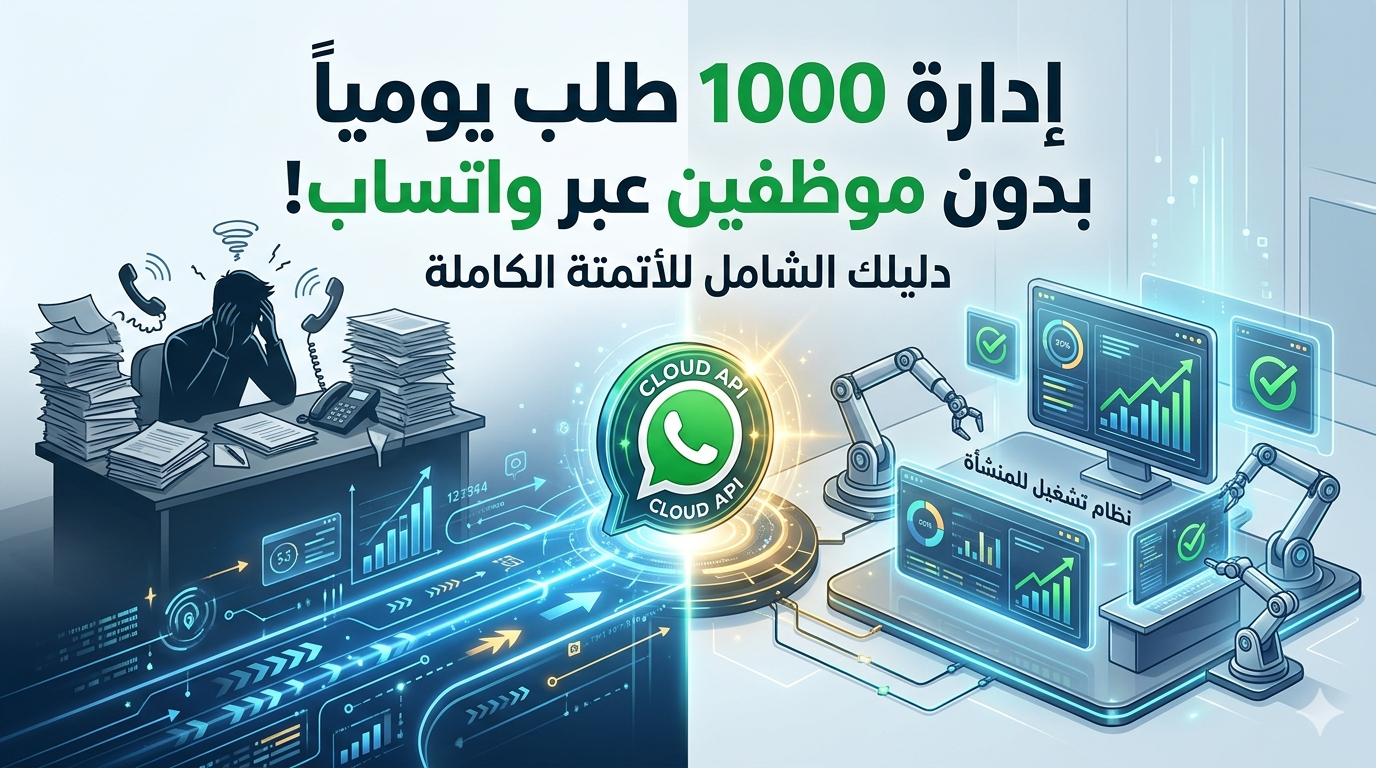 كيف تدير 1000 طلب يومياً بدون موظفين؟ دليلك لبناء نظام تشغيل كامل عبر WhatsApp Cloud API