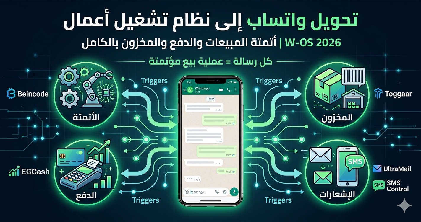 إن تحويل واتساب إلى نظام تشغيل أعمال (W-OS) ليس خياراً تقنياً ترفيهياً، بل هو ضرورة استراتيجية للبقاء في سوق 2026. من خلال دمج الهندسة القائمة على الأحداث (Event-Driven Architecture) مع حلول برمجية متكاملة مثل Whats360، Beincode، Toggaar، و EGCash، تستطيع الشركات الانتقال من إدارة المحادثات إلى إدارة الأرباح. هذا النظام يوفر بنية تحتية لا تنام، لا تخطئ، ولا تتطلب جيشاً من الموظفين، مما يضع قوة “الأتمتة الفائقة” في يد أصحاب الأعمال لتحقيق نمو غير محدود بأقل تكاليف ممكنة. المستقبل لمن يملك نظام تشغيل أعماله في جيب عميله.