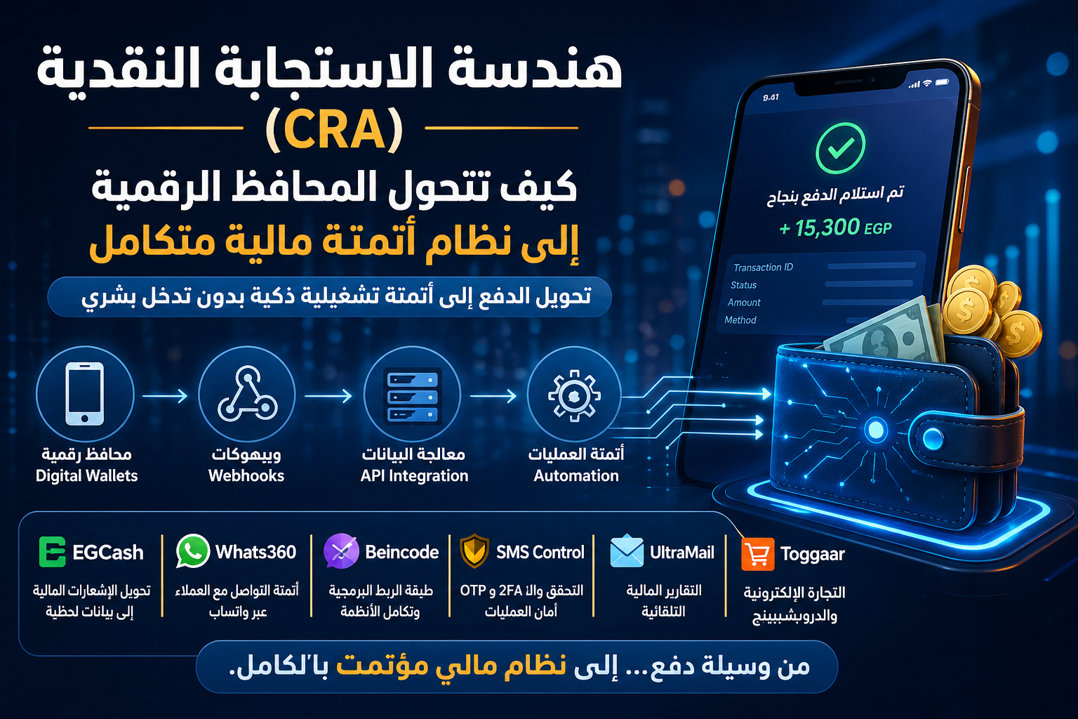 في العصر الرقمي المتسارع، لم يعد مفهوم “الدفع الإلكتروني” مجرد وسيلة لنقل الأموال من المشتري إلى البائع؛ بل تحول إلى تدفق بيانات حيوي يغذي شرايين المؤسسة. إن ما نطلق عليه اليوم هندسة الاستجابة النقدية (Cash Response Architecture – CRA) هو الإطار التقني الذي ينقل المحافظ الرقمية من كونها مجرد “أداة تحصيل” إلى “محرك أتمتة” متكامل. يعتمد هذا النظام بشكل أساسي على تقنيات Webhooks و API Integration لتحويل كل عملية دفع إلى سلسلة من الإجراءات التشغيلية التي تتم بدون تدخل بشري، مما يضمن كفاءة مطلقة ودقة متناهية في إدارة العمليات المالية.